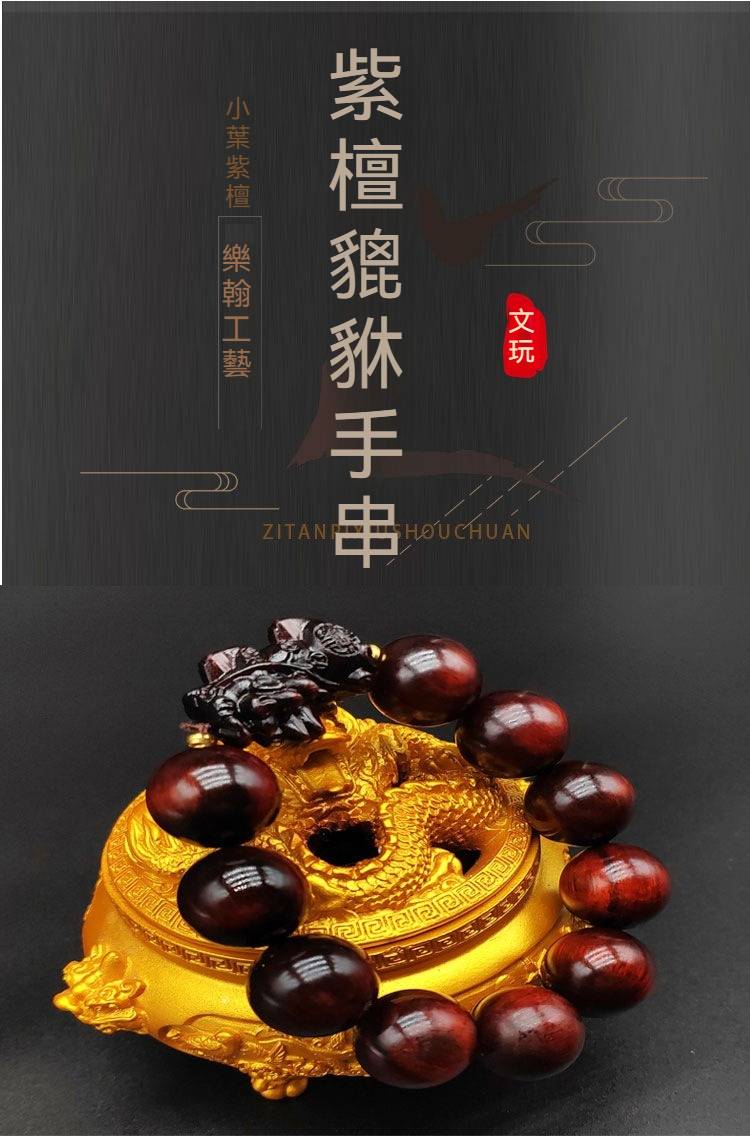 15分鐘前天然印度小葉紫檀貔貅手鍊 - 1入組- NT$999