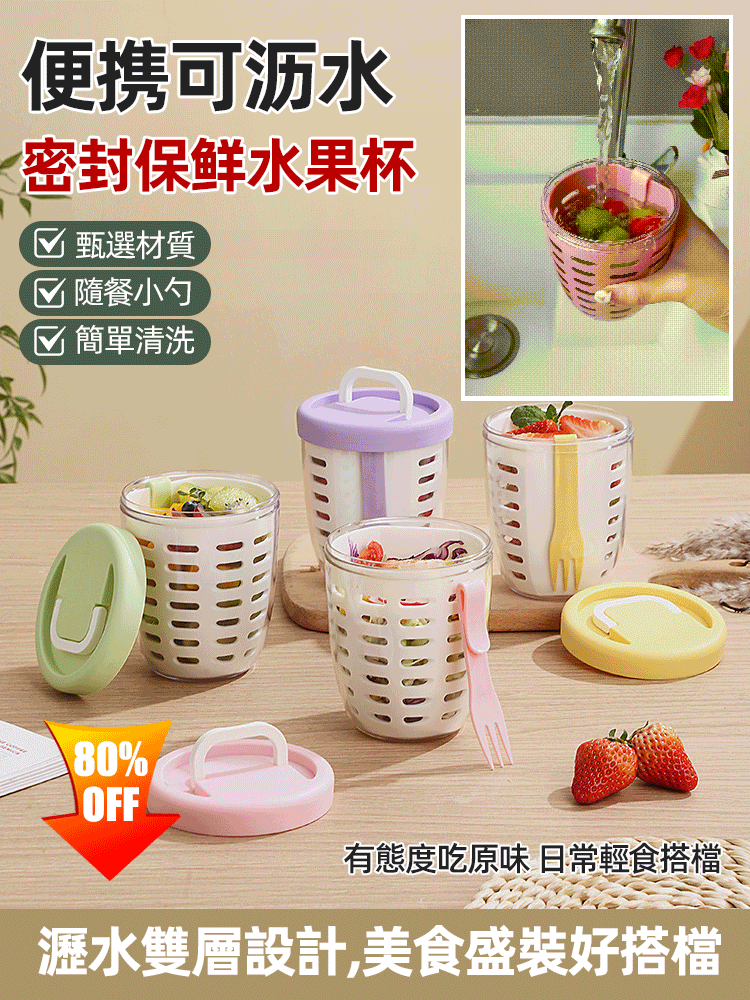 12分鐘前便攜可瀝水密封保鮮水果杯 - 買二送二1099